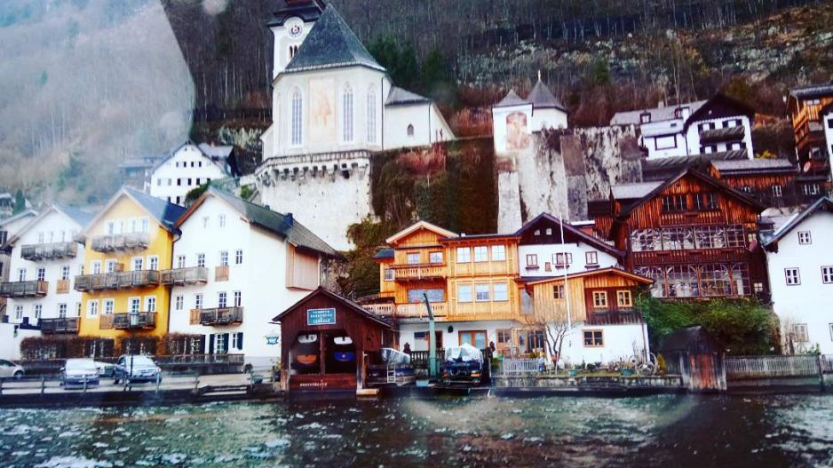 От Бад-Ишля до Гальштата - 30 минут пути. Остановки видны на табло, так что вы не пропустите свою. По пути мы снимали интересные виды и весело бурлящую горную реку, что местами была довольно буйной. И вот спустя полчаса мы уже на станции. Небольшой перрон, одно дорожное полотно вдоль горного массива, озеро Хальштеттер и лодочная станция. А на другом берегу - он, Гальштат. Паром всего один - лодочка, которая весь день ходит от берега к берегу, переправляя туристов и местных жителей. Минут 15 - и ты уже на пристани в Гальштате. Здесь же можно узнать расписание обратного парома и поезда (кстати, они удобно состыкованы, чтобы не пропустить поезд в обратную сторону до Бад-Ишля).