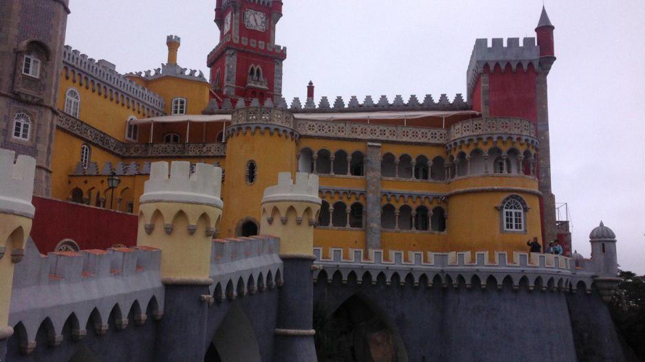 Дворец Пена прекрасен и в непогожий день. Он входит в список Всемирного наследия ЮНЕСКО и в список Семи чудес Португалии. Входной билет в парковую зону и в сам Дворец - €14. От входа до Дворца вас могут довезти на шатле, но мы предпочли прогуляться пешком, раз уже столько пройдено! И не зря - каждый новый поворот открывал все больше и больше интересных видов. В конце 90-х годов 19 века Архитектор Мазырин и миллионер Морозов воссоздали на Воздвиженке в Москве прототип Дворца Пена - сейчас это Дом приемов Правительства РФ. Он не такой красочный, выполнен в одном тоне, но столь же замысловатый и интересный.