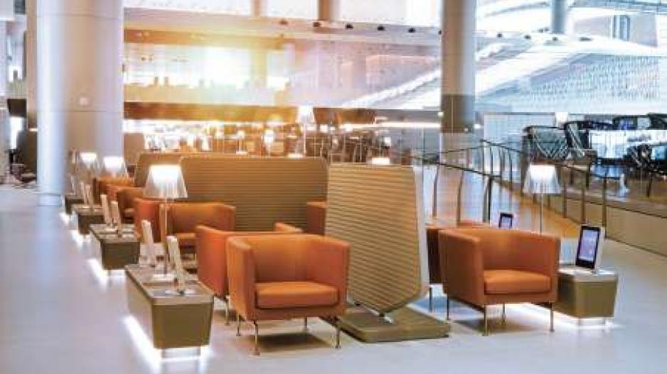 На нашем пути это был первый лаунж, большие панорамные окна которого выходили на ВПП. Что, определенно дает самому лаунжу больше света и парочку плюсов за вид. Здесь есть уютные диваны и кресла, а также высокие столы с барными стульями. Лаунж больше похож на уютный ресторан, куда вы зашли выпить кофе перед вылетом.