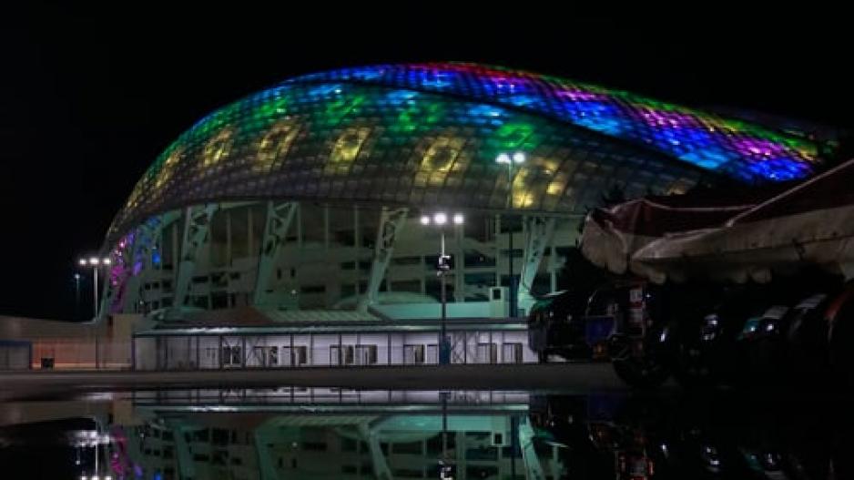 Конечно, все Олимпийские объекты: поющий фонтан в Олимпийском парке, стадион "Фишт", ледовые дворцы "Айсберг" и "Большой", ледовые арены, набережная, керлинг центр "Ледяной куб".