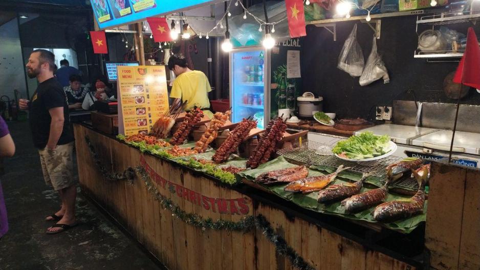 Район рынка популярен у туристов. Здесь много кафе, ресторанов, хостелов и отелей, массажных салонов (правда, там делают не только массаж). И музыка грохочет так, что я не завидую постояльцам отелей. Но что особо хочется отметить - фудмаркет Бен-Тхань. Он же фудкорт. Если вы когда-то были в московском "Депо", то примерно можете представить себе это заведение. Фудмаркет чище и лучше, чем простые найт маркеты во Вьетнаме и Таиланде. Здесь есть лавки с довольно дорогими по вьетнамским меркам блюдами, но есть и дешевые. Здесь круто, здесь вкусно, здесь шумно. И я не попробовала даже десятой части всего, что они предлагают. Ах да, здесь есть egg coffee. За что им отдельное спасибо!